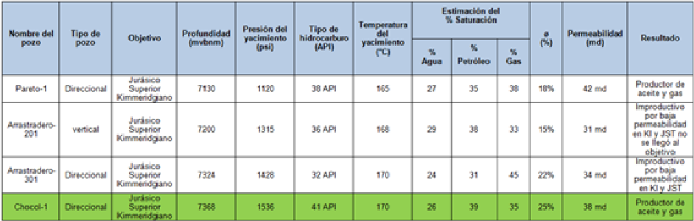 Cuadro 2. Datos comparativos de pozos de correlación (PEMEX, 2016).