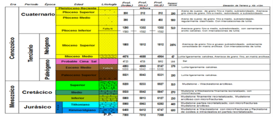 Figura 18. Columna geológica del Chocol-1(PEMEX, 2016)