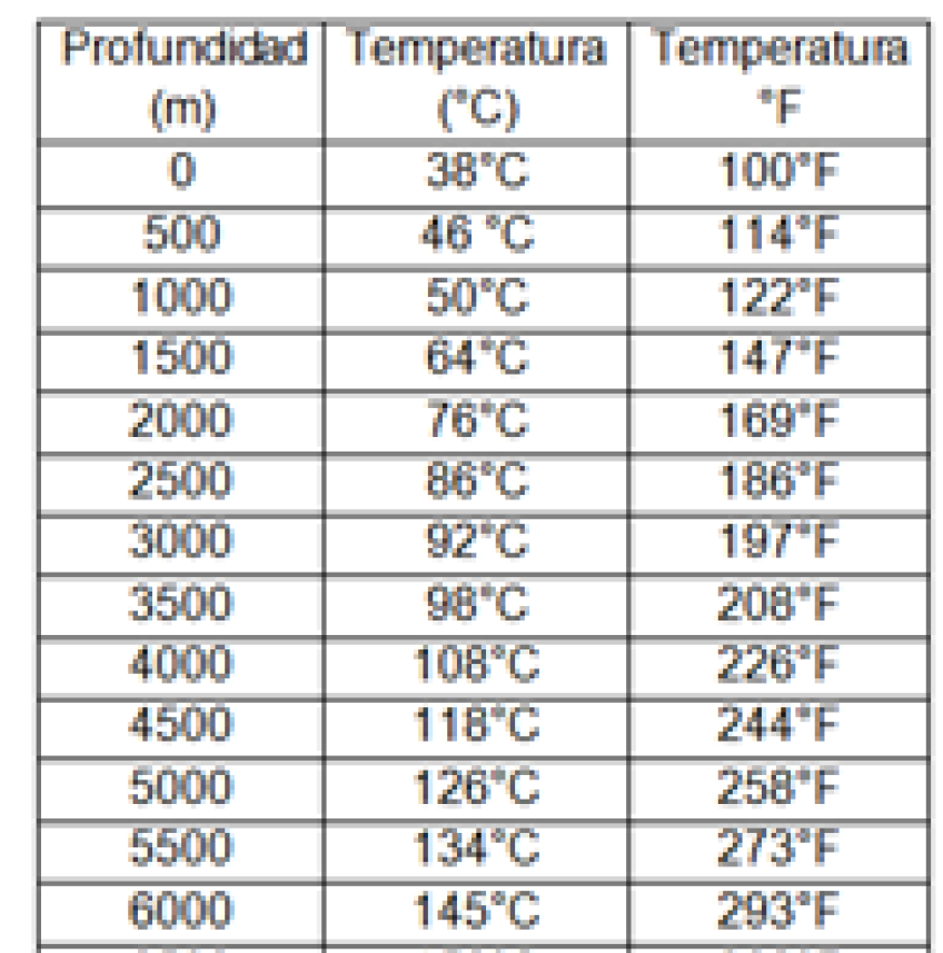 Tabla 4. Estimación de temperatura de yacimiento (PEMEX, 2016)