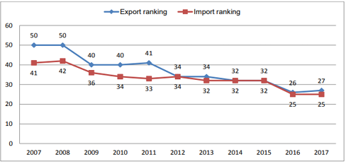 Figure 1. Viet Nam’s export and import rankings in the global market