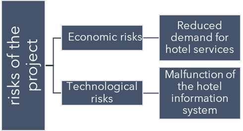 The decline in demand for hotel services may be related somewhat to the general deterioration of the economic situation due to the consequences of the COVID-19 pandemic. However, the sources of the risk of the hotel information system malfunction in compliance with the rules of operation to a greater extent may be external causes. An estimate of the magnitude of project risks is given in Table 3.