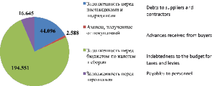 According to the diagram below (fig.2), the main accounts payable amounts are accounts payable to suppliers and contractors. These accounts payable are not overdue. Based on the results of the audit of primary documentation forms and statements in terms of accounts receivable and payable, we can conclude that Ilsky Oil Refinery LLC follows a conservative way, reducing its indebtedness to buyers on received advances faster than they pay for shipped products.