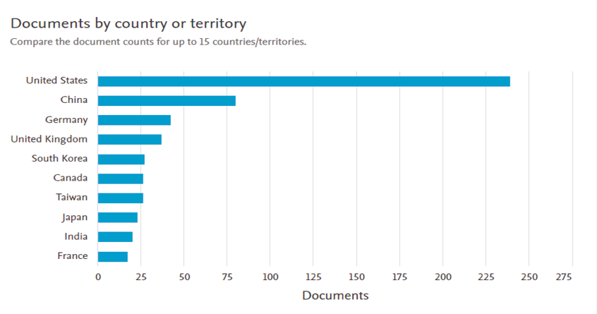 The 15 countries with the highest number of publications related to errors in information systems is the United States with a total of 240 article, China with a contribution of 80 article, 40 articles to Germany, 35 articles to United Kingdome, 30 articles to South Korea, 25 articles to Canada and Taiwan, 20 articles to Japan, 18 articles to India and 15 articles to France approximately.