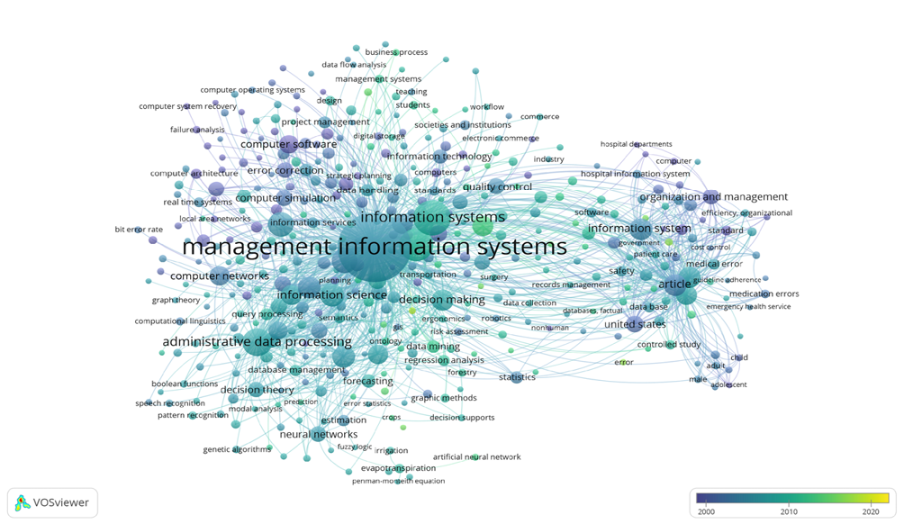 The keywords that present the highest frequency and weight are management information systems, information systems, information management, administrative data processing, unlike errors, which although they appear related in the keywords, it is evident that there is still a lack of studies that analyze the relationship between these two concepts.
