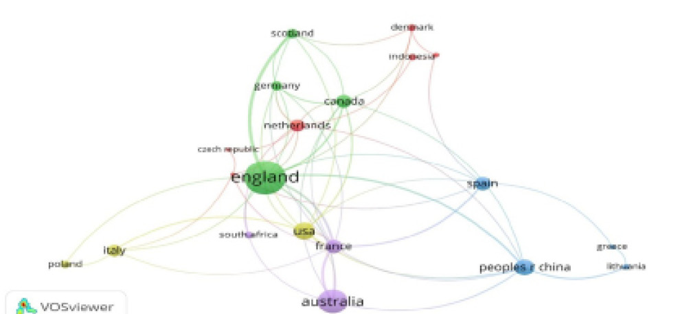 Figure 4 shows the contribution of the studies mentioning the country of origin, we highlight the contribution of England and Australia, which are the countries that contributed with the largest number of documents produced, and the countries of England and Italy, which are the countries with the highest number of accumulated citations, finally, the countries England and France that stand out with the highest rates of link strength.