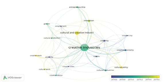 The interest in studying the subject of creative industries is visualized, which is growing and has a high relevance as of 2018 with a special emphasis on the year 2021.