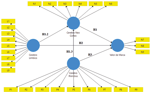 Los modelos y estudios multidimensionales para medir el valor de marca desde la perspectiva del consumidor, desarrollados por (Aaker, 1992a; Keller, 1993; Lassar et al., 1995; A. F. Villarejo Ramos, 2002; Yoo et al., 2000), así como las teorías sobre la interacción de los niveles del cerebro triuno, propuesto por el neuromarketing, sobre los motivadores del comportamiento del consumidor al momento de elegir un producto (Ali, 2019; Lee et al., 2007; Reiner, 1990; Shukla, 2020; Soler Mouline, 2019; Vera & Trujillo, 2017), intentan explicar de manera complementaria, pero separada, el comportamiento del consumidor; en este criterio se propone el siguiente objetivo: validar un modelo para medir la dominancia cerebral del neuromarketing considerando los modelos multidimensionales de valor de marca desde la perspectiva del consumidor, tomando como objeto de estudio un segmento que pertenece a la cohorte poblacional denominada Generación Z.