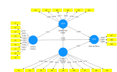 Existe influencia directa tanto del cerebro límbico como del cerebro primitivo sobre la percepción del valor de marca, que resulta ser una variable del cerebro neo-cortex.