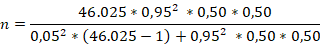 A partir de la aplicación de la ecuación con los valores definidos para las variables determinadas, el tamaño de muestra obtenido es el siguiente:
