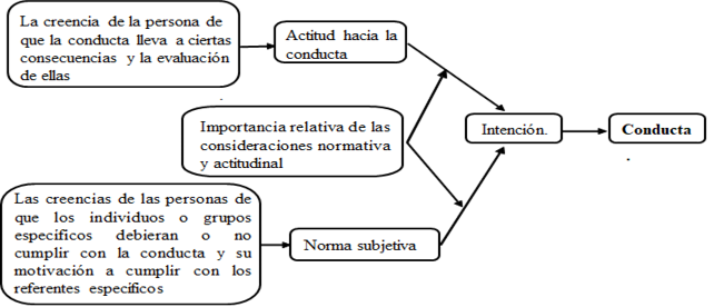 Los autores mencionados, por medio de su teoría, han identificado tres componentes que en su conjunto dan una explicación de la conducta del sujeto. De aquí que la intención, esto es, la actitud hacia la conducta y las normas subjetivas responden a las creencias formadas por el sujeto.