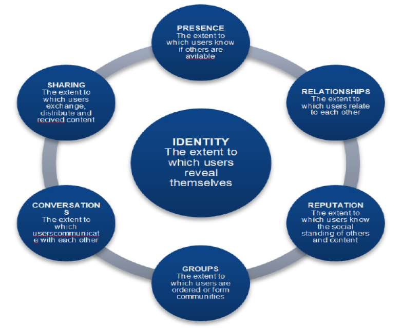 Figura 1. Social Media functionality, Kietzmann, J. H., Silvestre, B. S., McCarthy, I. P., & Pitt, L. F. (2012), Pág. 2.