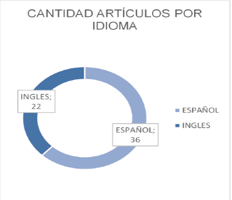 Partiendo de una búsqueda bibliográfica de artículos de estudios e investigaciones, permitió realizar un análisis con la finalidad de obtener las respectivas conclusiones se realizó el análisis con cincuenta y ocho (58) artículos escritos por autores con un alto nivel de investigación científica y académica, en dos (2) idiomas: inglés y español, donde argumentan la importancia de las redes sociales y su incorporación en los procesos de gestión para diferentes proyectos entre ellos, proyectos de ámbito social sobre variados sectores y compañías. La figura 2 contrasta la diferencia de artículos de acuerdo con el idioma.