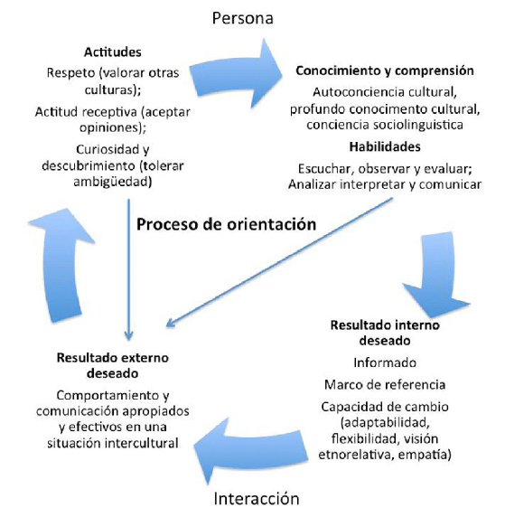 En la Figura 2 se resume, cuáles son las herramientas fundamentales para ser interculturalmente competente. En la mayoría de los casos no se alcanza un punto máximo o un aprendizaje completo en esta ni en otras muchas competencias, todo depende del sujeto, contexto y experiencia se tendrá un comportamiento u otro.