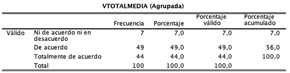 Tabla 7 Media de frecuencias obtenida de las tres dimensiones.