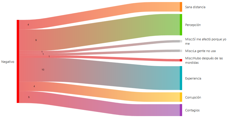 Se analizaron los sentimientos de los participantes al establecer las experiencias y percepciones que han tenido durante la estrategia, se pudo visualizar que los sentimientos son negativos, ya que consideran que no se cumplía con la sana distancia establecida para evitar contagios. Así mismo, la percepción de la estrategia ha sido negativa, debido a que refieren afecta a las personas que tienen que trabajar, además de tener conflicto con las directrices de gobierno estatal y gobierno federal sobre el color del semáforo. Por otra parte, visualizó la experiencia como negativa por parte de los diez participantes, ya que afectaba su vida diaria, como en el caso de pacientes con necesidad de acudir a las clínicas de salud para revisiones y medicamentos mensuales. De igual forma, el sentimiento continuó siendo negativo con respecto al tema de corrupción, ya que se mostró que una estrategia que pretendía apoyar a la población a la mitigar la propagación del virus COVID 19, se volvió un instrumento para propagar la corrupción y con ello, descalificar la relación entre ayudar a la población y cobrar a la población por el uso de su propio vehículo, de tal manera que la percepción negativa continúa.