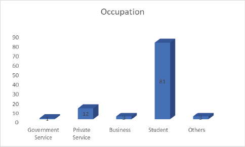 81% of the respondents were students while 12% were employed in private sector. 3% of the respondents had their own business and 1% were employed in public sector. 3% had some other occupation.