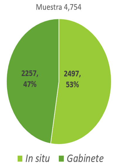 Un segundo instrumento, es la validación en gabinete de 2,497 sitios equivalente al 53%, la cual consiste en utilizar herramientas como google maps, para la identificación de los inmuebles propuestos dentro de la muestra y el resto de los sitios se estableció un mecanismo de integración y depuración aplicando criterios como: Sitios Duplicados, en remodelación, reubicación o encontrarse en inmuebles particulares. Para esta actividad se estableció una tarea de revisión de renglón por renglón la cual busca alcanzar la aplicación de los criterios establecidos por parte de la MC y el CTC. En la Img.1. Se muestra la actividad realizada por personal de la IOE.