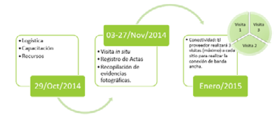 Para establecer el procedimiento del análisis y revisión de la información proporcionada por las dependencias y actores participantes es fundamental la comunicación entre los comités, la cual es imprescindible para una correcta toma de decisiones en la consolidación del inventario final de sitios e infraestructura a utilizar y conectar en el Estado, los cuales tienen la facultad de establecer los anchos de bandas requeridos para cada sitio, tipo de torres, aplicaciones a utilizar, filtrados de contenido y distribución por zona, todas estas acciones son propuestos para su aprobación por parte de la mesa de coordinación (MC) junto al inventario final de sitios a conectar en Tabasco. (ICN, 2014).
