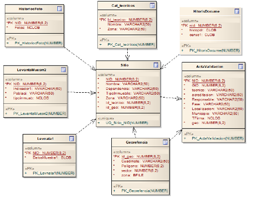 El resultado de este esquema de trabajo, permitió la identificación de los principales universos de almacenamiento que existía dentro de la IOE de Tabasco, priorizando con ello las acciones de desarrollo. El desarrollo del modelado de datos se fundamentó en la integración de todos los archivos de Excel, base de datos externas y servidores remotos existentes en cada actividad solicitada a la IOE, lo cual permitió construir un mapa conceptual robusto para las necesidades específicas de toma de decisión dentro de la IOE. En el Diagrama 1, se muestra el esquema de base de datos empleado para el desarrollo de la aplicación web usando herramientas RIA, que permiten tener la información actualizada instanciada desde cada dependencia participante y así establecer una toma de decisiones diferente, dentro de un proceso sistematizado durante el desarrollo del proyecto en la entidad.