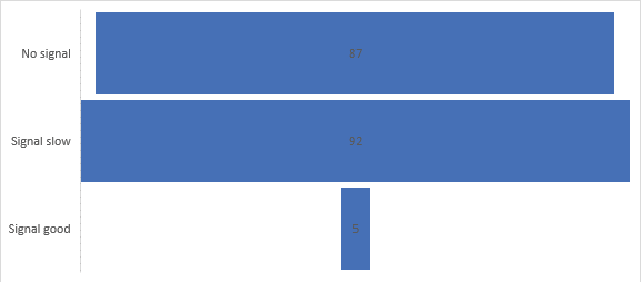 In the 2021-2022 school year, Nam Pac district high school conducted a survey of students about online learning, the results showed that about 20% of students can borrow their parents’ smartphones to study. About 95% of students are minorities, their families are agricultural, low-income and do not have the means to equip vehicles such as smartphones or computers for online learning. Therefore, learning online will be very difficult. In addition, in villages, internet connection is still limited, phone waves are unstable, so knowledge acquisition activities are significantly affected (figure 4)