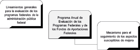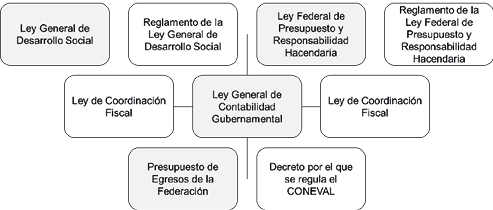 La evaluación en México tiene su base normativa sustentada principalmente en la Ley General de Desarrollo Social (LGDS) que se promulgó en el año 2004, que no sólo contiene los lineamientos y criterios mínimos para la identificación y medición de la pobreza, sino que busca incidir transversalmente en la evaluación de los programas y acciones que ejecuten las dependencias y entidades públicas federales al establecer la reducción de la pobreza como el indicador más importante del desempeño de la política de desarrollo social. El CONEVAL desde su creación ha diseñado las siguientes metodologías estandarizadas para evaluar diversas fases de la política: i) diseño, ii) procesos, iii) consistencia y resultados, iv) específicas de desempeño, v) indicadores, vi) estratégicas y de v) impacto. Las diferentes propuestas de modelos de términos de referencia producen información a través de evaluadores externos e internos acerca de los hallazgos, debilidades, oportunidades y amenazas de las intervenciones públicas que terminan en informes, pasan por una revisión institucional para analizar su viabilidad y establecer compromisos de las dependencias y se convierten, después de un proceso administrativo, en recomendaciones que serán discutidas a partir del mecanismo de seguimiento de los aspectos susceptibles de mejora (MASM) (Consejo Nacional de Evaluación de la Política de Desarrollo Social, 2019).