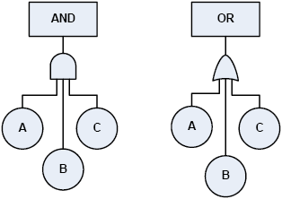 Figure 1. AND gate (left) and OR gate (right) in fault trees