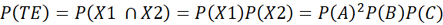 Consequently, assuming that X1 and X2 are independent (which is the common assumption in the fault tree) the probability of TE (Top Event) will be calculated as: