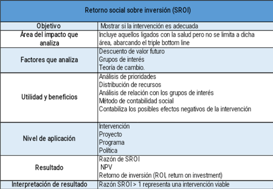 Nota. Adaptado de Análisis crítico sobre el uso del SROI en la evaluación del impacto social en iniciativas de emprendimiento social: caso México (p. 60) por Medina & García, 2019, Revista AD-minister Nº. 35.