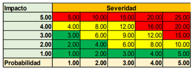 Nota. Adaptado de Evaluación ex post de la gestión de riesgos de proyectos con recursos del sistema general de regalías, caso de estudio mantenimiento mejoramiento y rehabilitación de la vía regional Pupiales- Gualmatán, municipio de Pupiales, departamento de Nariño (p. 84), por Robayo-Parga & Garcia-Cano, 2021, Universidad Católica de Colombia.