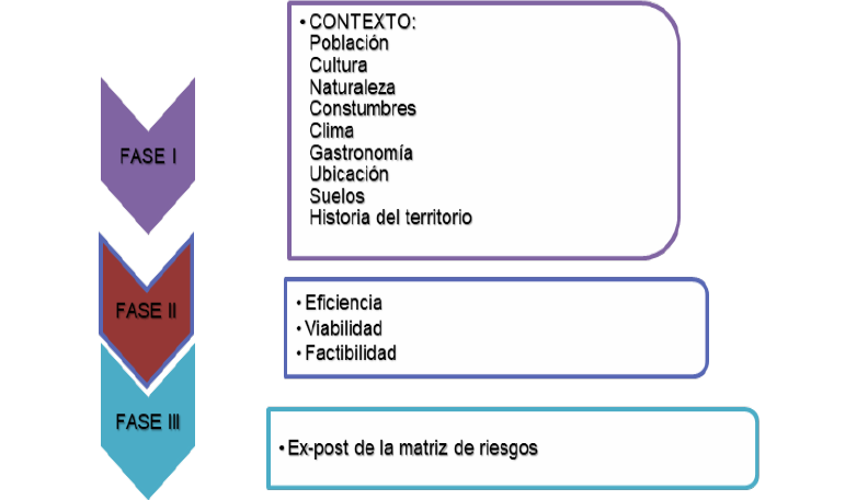 En esa fase se busca evaluar los criterios de factibilidad, viabilidad y eficiencia con respecto al contexto donde se pretende llevar a cabo el proyecto, o se realizó el mismo (ver figura 8). Es decir, que tal factible, viable y eficiente fue con respecto a la población, su cultura, sus costumbres, entre otras. Estas categorías de evaluación buscan medir el impacto que tuvo o tendrá el proyecto en el territorio.