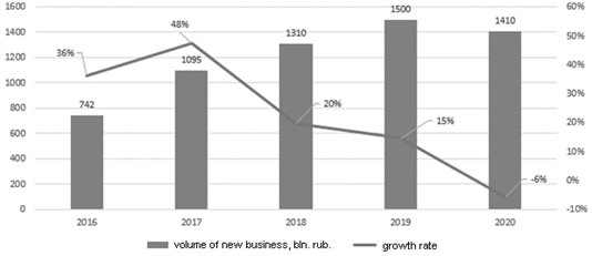 Figure 1. Leasing Market Dynamics in the Russian federation between 2016 and 2019 by the New Business Volume