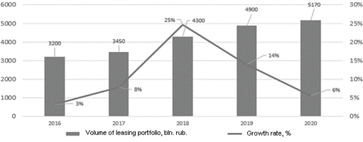The leasing market’s dynamics by the leasing portfolio’s volume is demonstrated in Figure 2.
