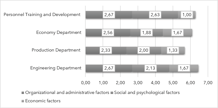 (1) Organizational and administrative factors have the greatest influence on the formation and development of the innovation potential of employees;