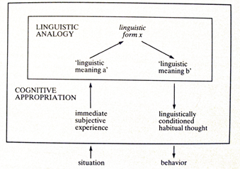 The Behavior-centered approach begins with an encounter and a marked difference in behavior, usually one that is initially inexplicable but which the researcher comes to believe has its roots in a pattern of thought arising from language practices (Whorf, 1956b).